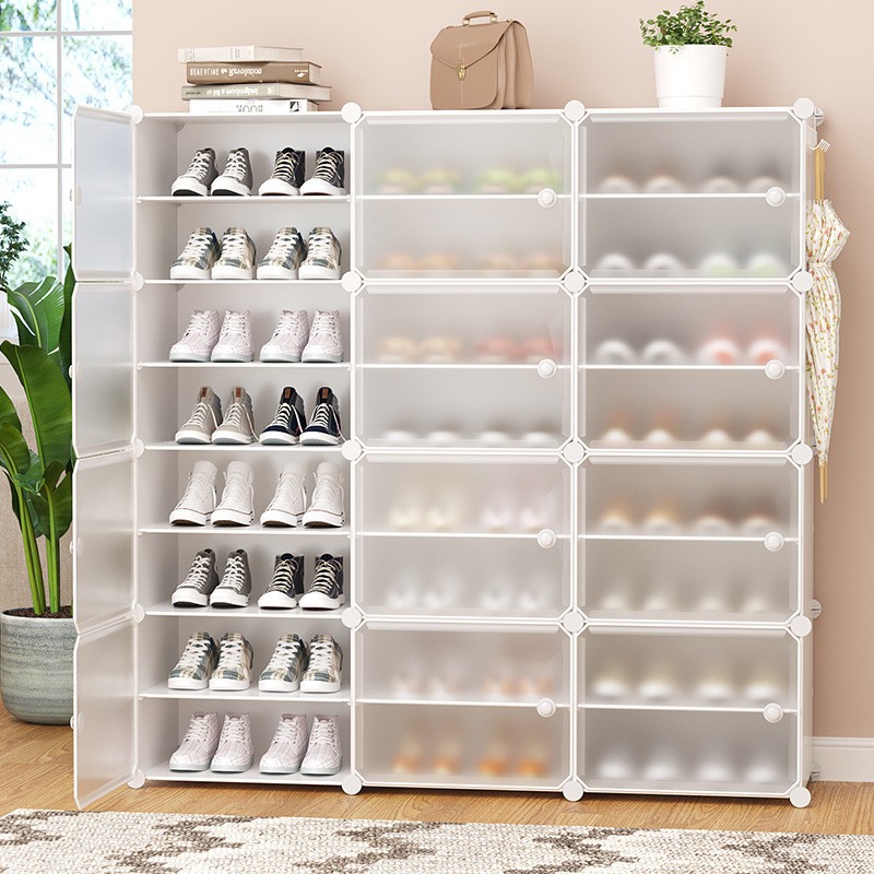 Cube Plastic Dustproof Shoe Cabinet DIY Multilayer Shoe Rack Storage Shoes Boots Organizer with Door